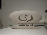 2014vloeiende,liggende vorm met in een afgeronde uitsparing(venster) een golf. door de vorm mooie schaduwwerking.